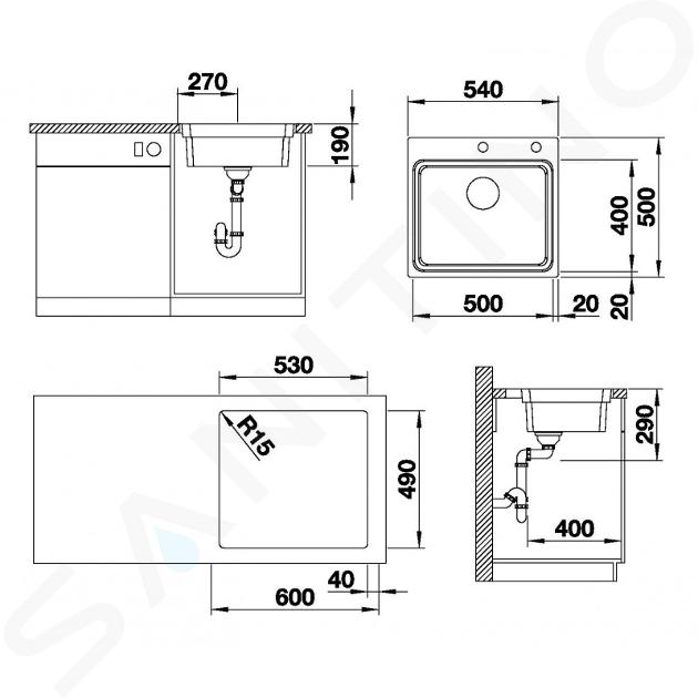 Questo lavello da cucina è ideale per essere collocato in un mobile con una larghezza minima di 600 mm. Le dimensioni d'ingombro sono di 540 x 500 mm, mentre le dimensioni del lavello sono di 500 x 400 mm. Il lavello ha una profondità di 190 mm e comprende un troppopieno C-overflow® di alta qualità e il sistema di scarico di design InFino®. Il kit comprende anche due guide di scorrimento Etagon, una valvola di scarico con comando eccentrico, un kit di scarico con tubo salvaspazio e un set di fissaggi.