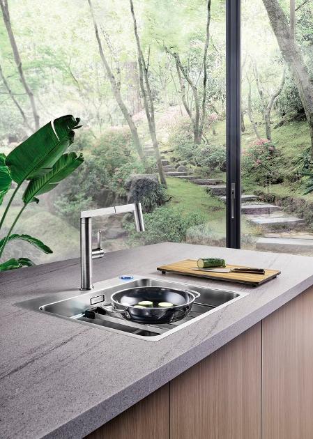 Questo lavello da cucina Blanco Etagon 500 offre molti vantaggi - è dotato di un esclusivo colino di design, di un comando di scarico a distanza e di guide multifunzionali Etagon.