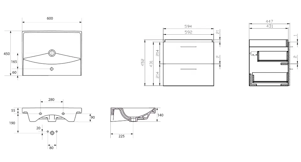 Mobiletto da bagno con lavabo Lara City 60