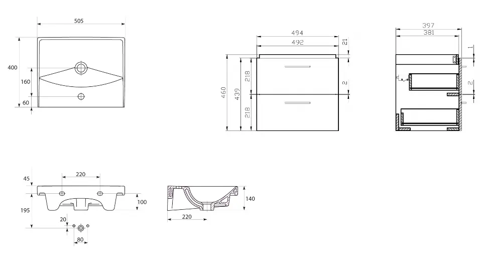 Mobiletto da bagno con lavabo Lara City 50