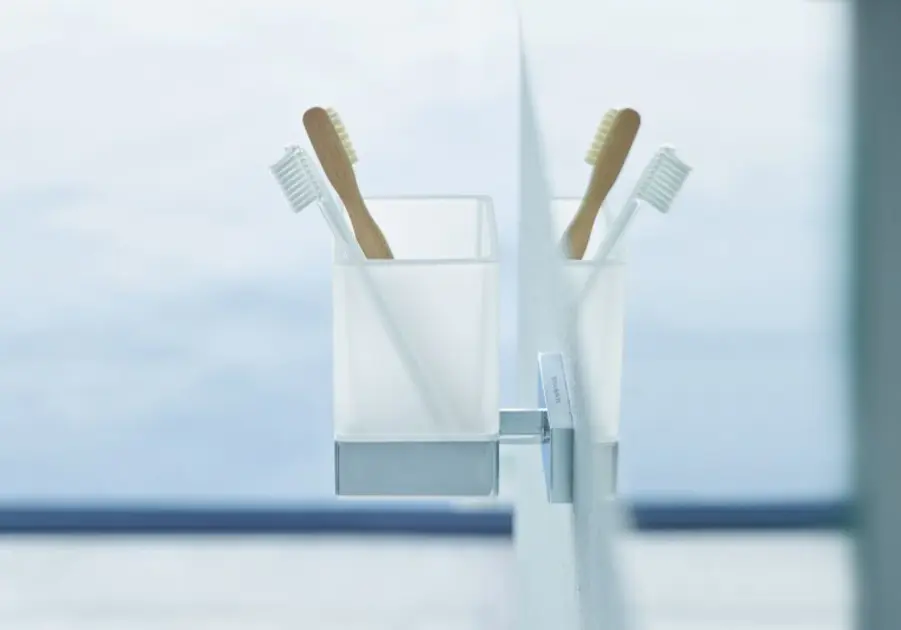 Bicchiere per spazzolini e dentifricio con supporto