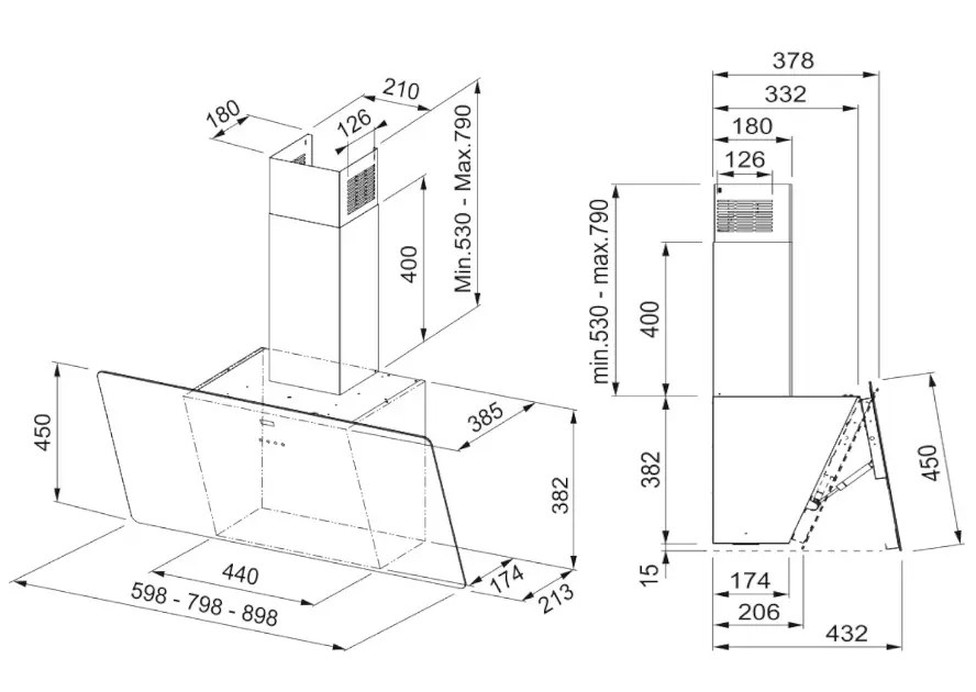 Cappa camino verticale inclinata Evo