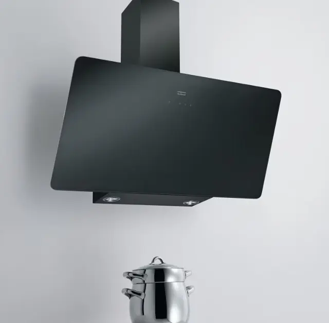 Cappa camino verticale inclinata Evo finitura: vetro nero, RAL 9005... Visualizza la descrizione completa