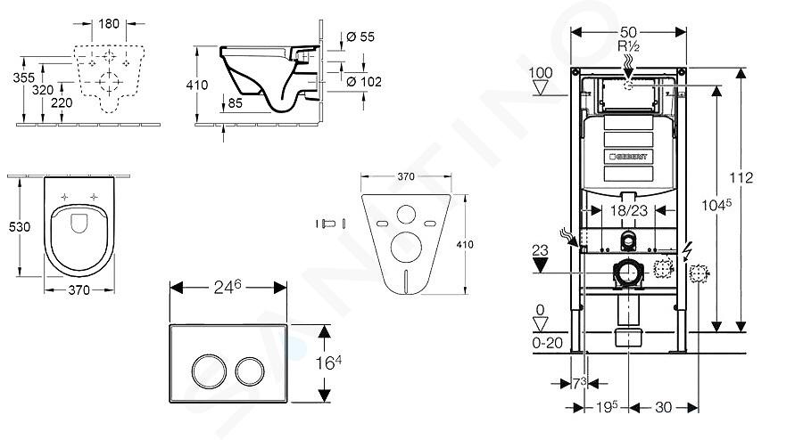 Set di installazione a parete, WC e sedile Villeroy & Boch, pulsanti... Visualizza la descrizione completa