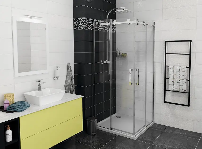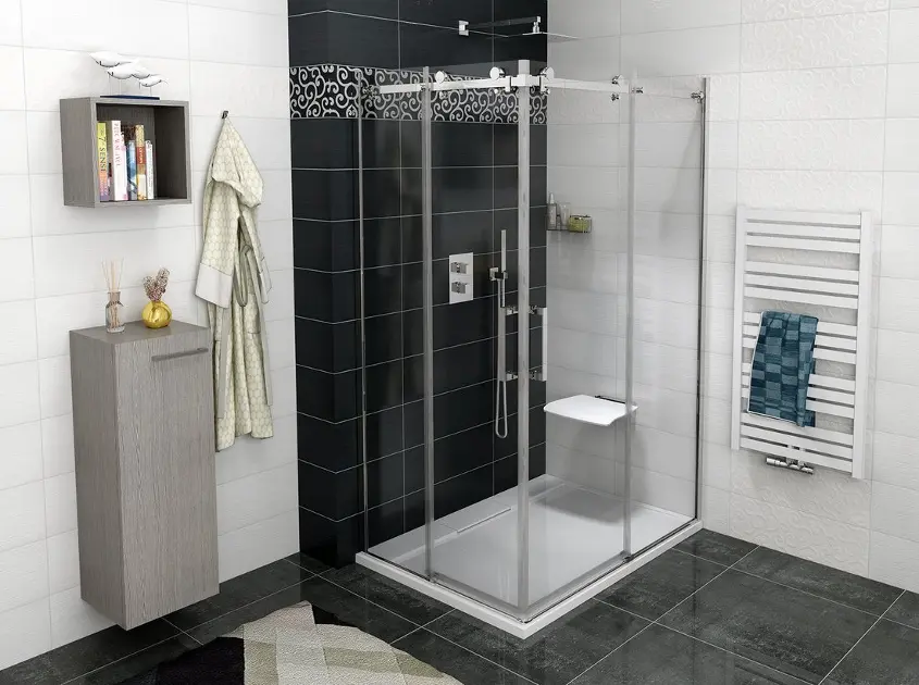 Il vetro rivestitoè uno dei trattamenti del vetro di qualità più bassa per le cabine doccia. Sulle superfici del vetro, con l'aiuto di una sostanza chimica, viene creato uno strato continuo che riempie i micropori. Grazie alla pellicola idrorepellente, le gocce d'acqua si raggruppano e colano via dalla superficie del vetro.