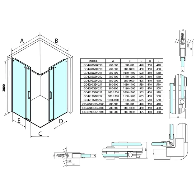 Il prodotto non è installabile separatamente, la seconda parte della porta doccia GD42 va ordinata separatamente. Non utilizzabile per installazione in nicchia o con parete laterale.
