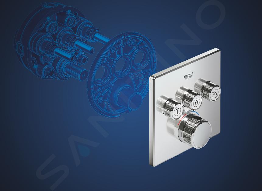 Controlla, cambia e combina le modalitá di flusso dell'acqua, inclusa la temperatura dell'acqua, grazie all'innovativa tecnologia SmartControl. Il sistema é sicuro anche per i bambini grazie al fusibile GROHE SafeStop. Ció impedisce impostazioni di temperatura involontarie superiori a 38 ° C. Potete anche scegliere un livello di sicurezza aggiuntivo sotto forma di un fusibile GROHE SafeStop Plus (fusibile 43 ° C). Altre tecnologie integrate includono GROHE Turbostat, che previene le fluttuazioni di temperatura, e GROHE EcoJoy, che offre un flusso d'acqua ecosostenibile. Il sistema GROHE QuickFix consente un'installazione rapida.