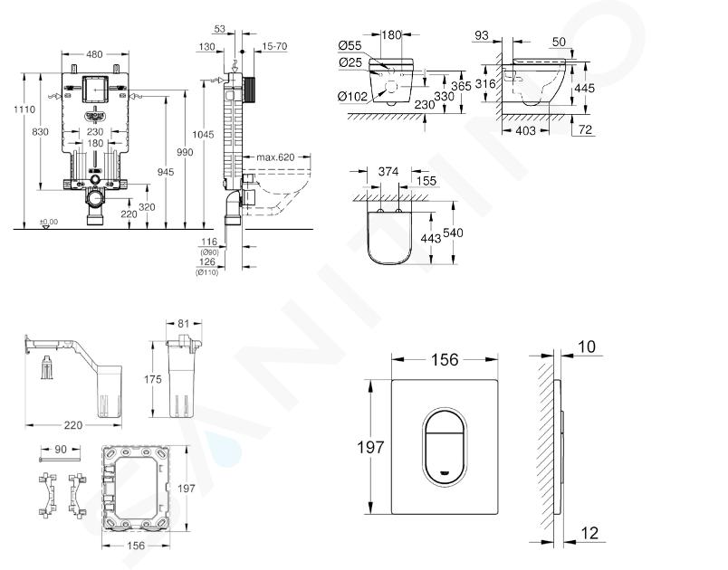 Modulo Uniset per WC, serbatoio di risciacquo GD 2