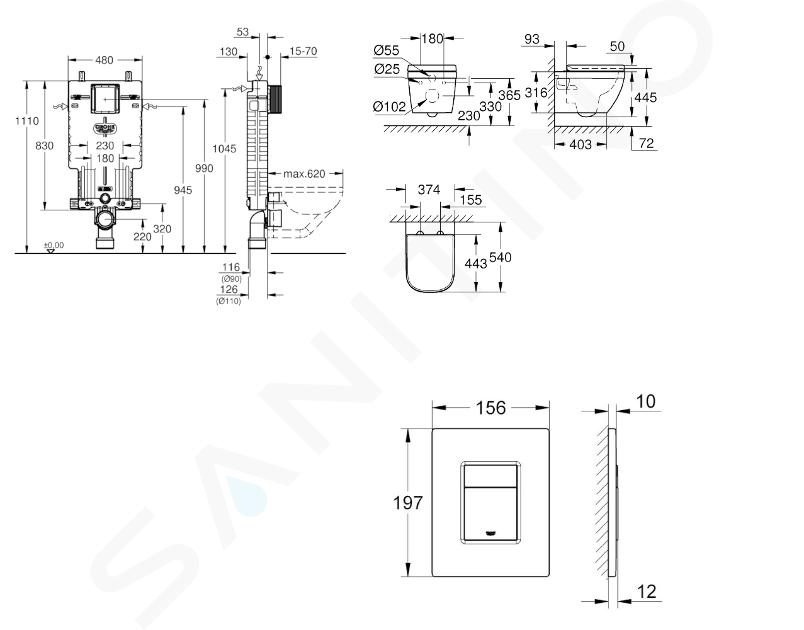 Modulo Uniset per WC, serbatoio di risciacquo GD 2