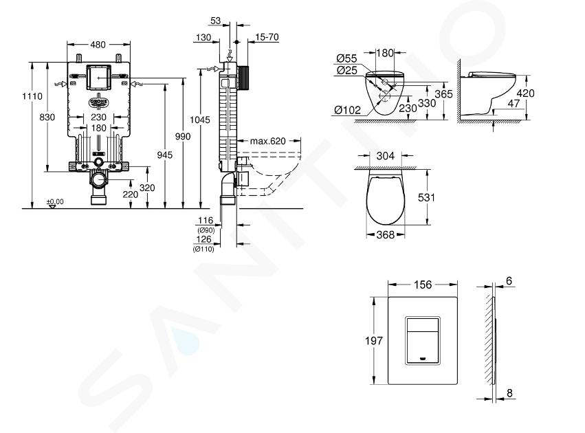 Modulo Uniset per WC, serbatoio di risciacquo GD 2