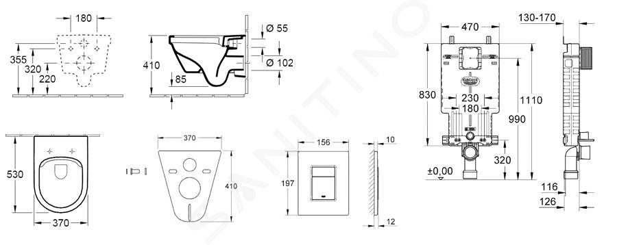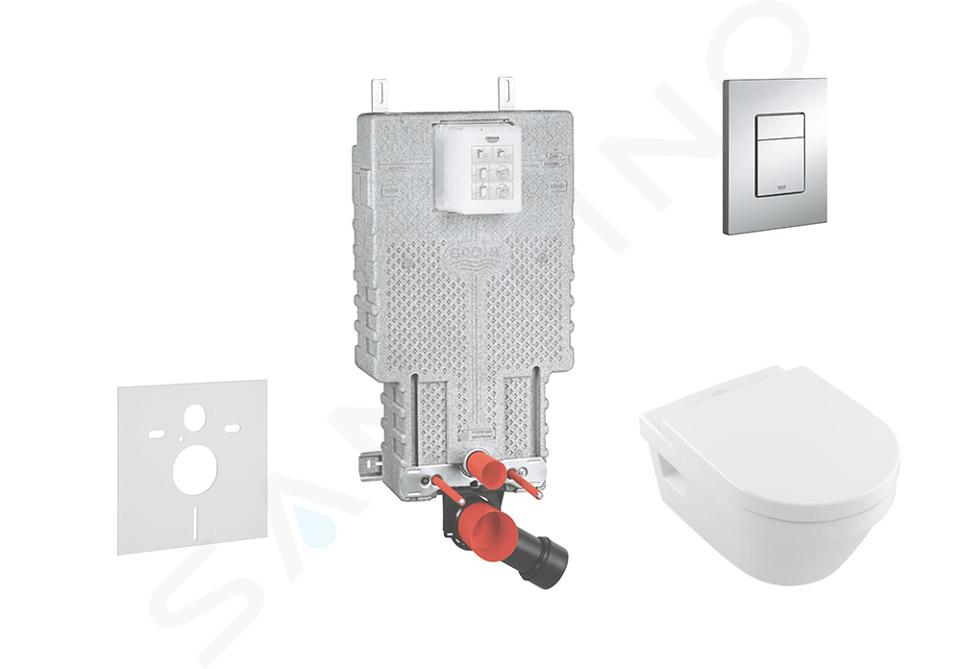 Set di installazione a parete, vaso WC e sedile Villeroy & Boch, pulsanti Skate Cosmopolitan, cromato
