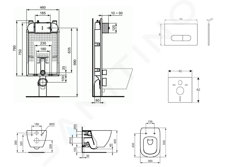 Kit di montaggio completo per WC sospeso WC con AQUABLADE tecnologia... Visualizza la descrizione completa