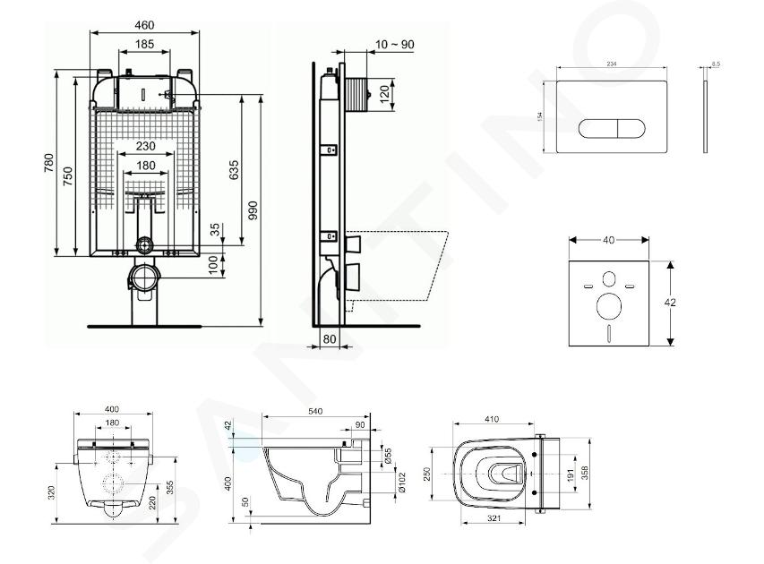 Modulo di installazione leggero davanti a parete ProSys 80M per WC sospeso