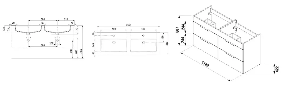 La serie di bagni Cube si distingue per i suoi mobili eleganti e pratici, caratterizzati da un lavabo di grande effetto. Sulla sua superficie liscia c'è molto spazio per riporre gli articoli da toilette. Nel mobile spazioso sotto il lavabo è possibile riporre comodamente gli altri oggetti. Il mobile può essere bianco o in finitura rovere scuro ed è disponibile in diverse dimensioni. Se state cercando un mobile adatto a un bagno più spazioso, siete nel posto giusto. In questo caso, un mobile più grande con doppio lavabo sarà perfetto.