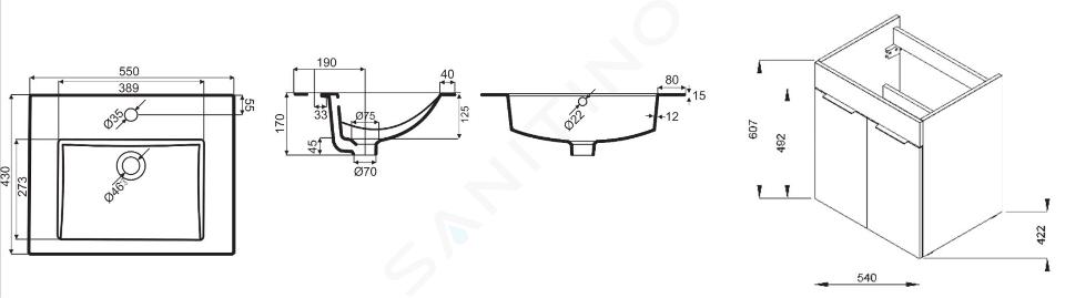 Con il mobile si ottiene un lavabo resistente in ceramica sanitaria, al quale è possibile aggiungere qualsiasi rubinetto, sifone e altri accessori. Questi elementi devono essere ordinati separatamente, non sono inclusi nella fornitura.