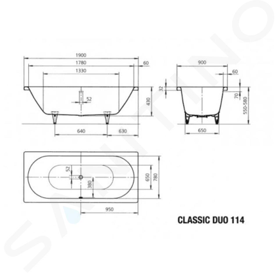 Vasca da bagno Classic Duo Oval modello: 114 colore: bianco con... Visualizza la descrizione completa