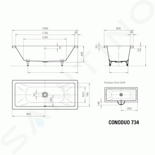 Vasca da bagno rettangolare Conoduo modello: 734 colore: bianco, con... Visualizza la descrizione completa