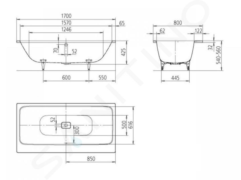 Piedini, sifone e maniglia non inclusi.