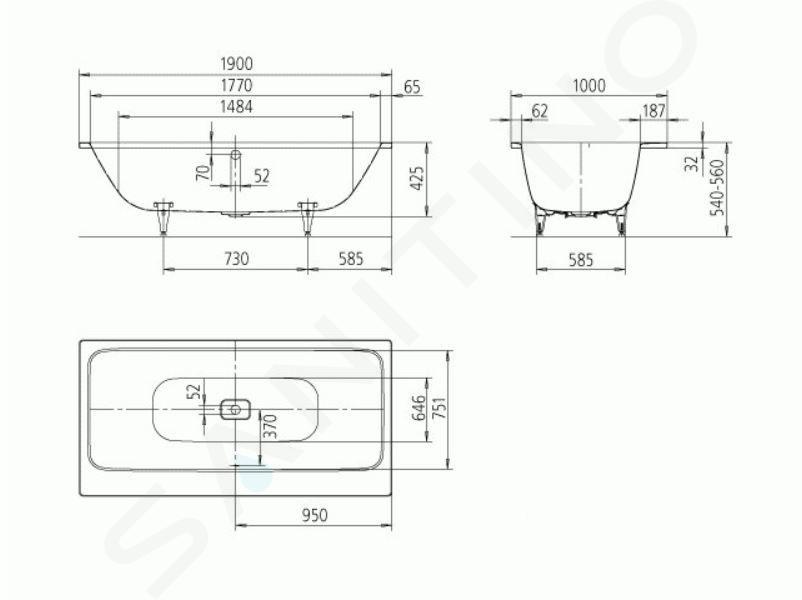 I piedini di supporto e sifone per vasca da bagno non sono inclusi nella fornitura.