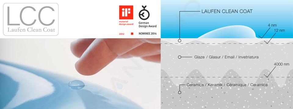LCC è una superficie innovativa che mantiene la brillantezza più a lungo. È uno strato di vetro ceramico-silicato, che viene cotto sulla smaltatura originale. È quindi estremamente liscio, duro e praticamente indistruttibile. Attrae l'acqua senza formare gocce. Sporcizia, calcare e batteri non sono quindi in grado di aderire alla superficie non porosa e vengono lavati via dall'acqua che scorre. Detersivi e disinfettanti si versano meglio sulla superficie, aumentandone l'efficienza e prolungando così la durata della ceramica del bagno.