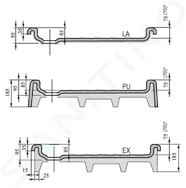 Il sifone e i piedini per la vasca non fanno parte della fornitura.