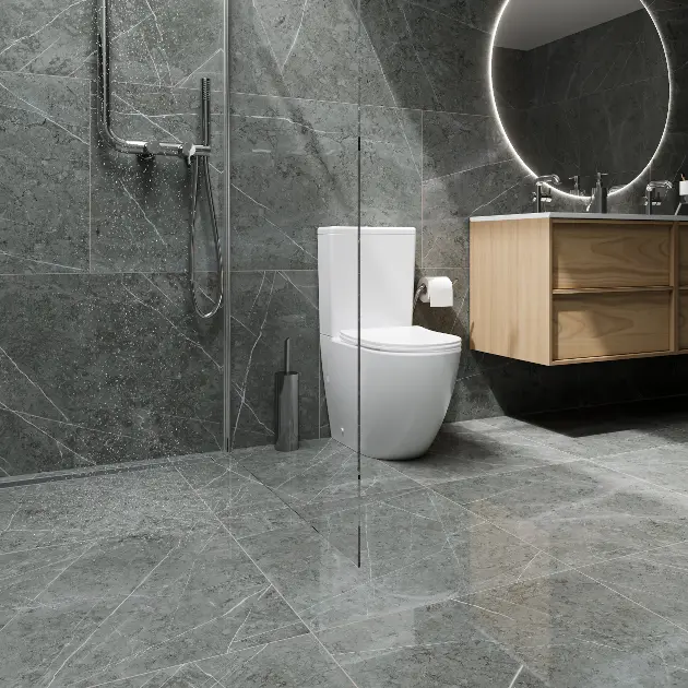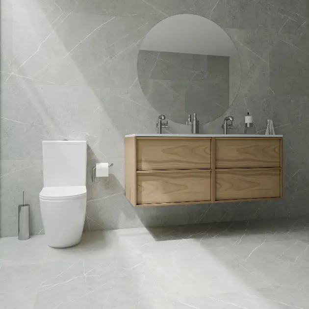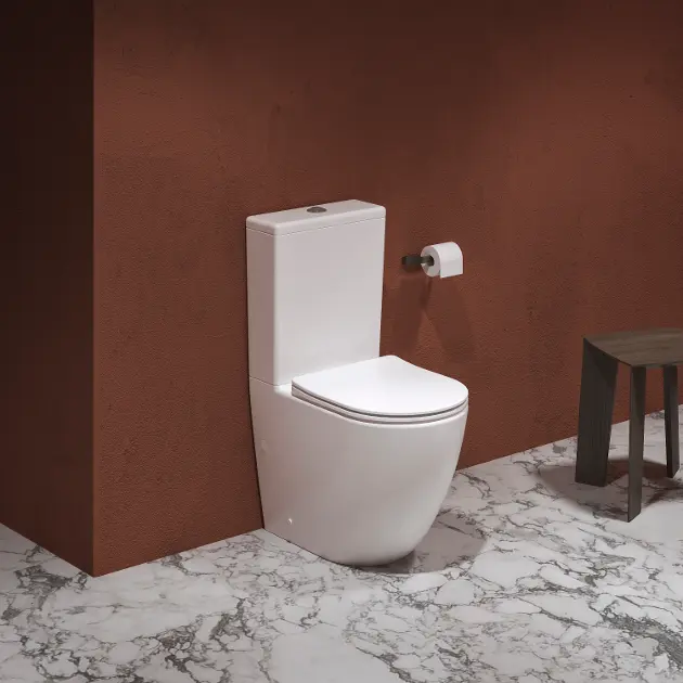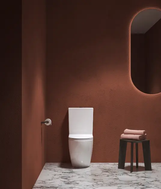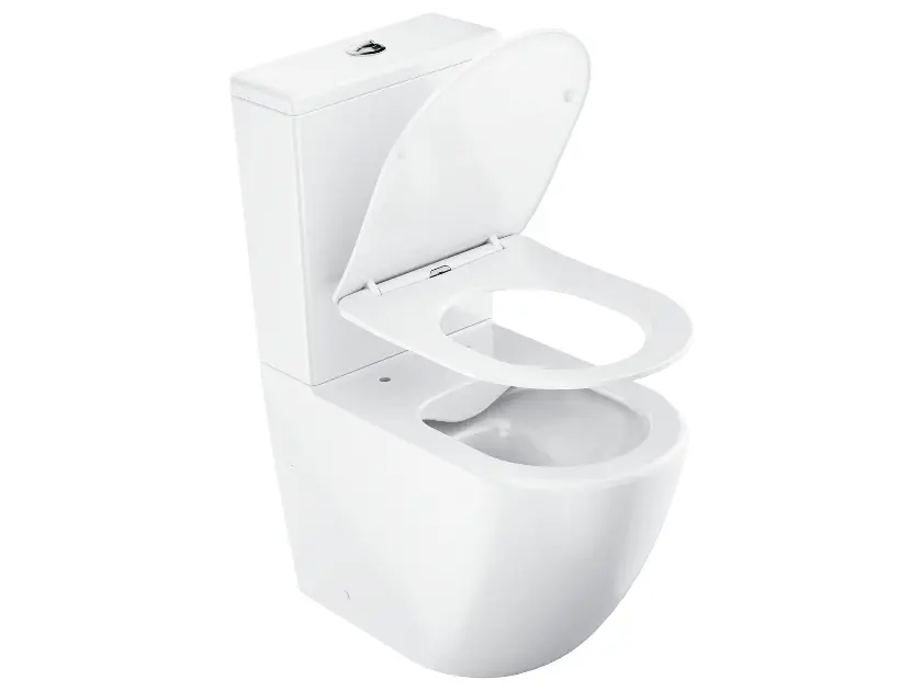 Tecnologia di risciacquo senza bordi che elimina i depositi di sporcizia. Lo speciale design del WC consente il risciacquo con un semplice getto d'acqua senza la necessità di ulteriori pulizie.