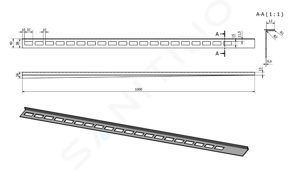 Barra di caduta in acciaio inox a sinistra lunghezza: 1000 mm... Visualizza la descrizione completa