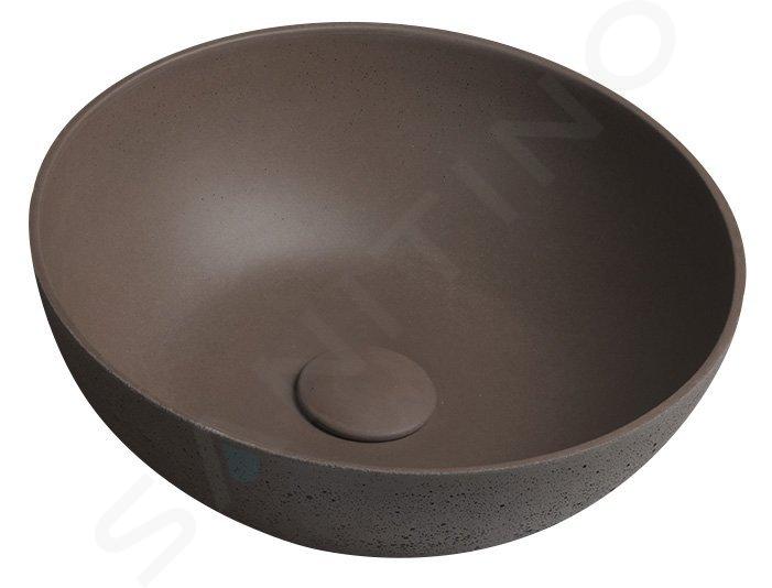 Lavabo rotondo in cemento colore marrone scuro materiale cemento... Visualizza la descrizione completa