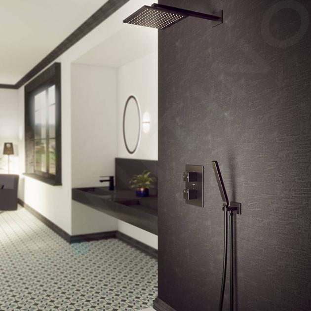 Soffione doccia a pioggia colore nero opaco materiale ottone... Visualizza la descrizione completa