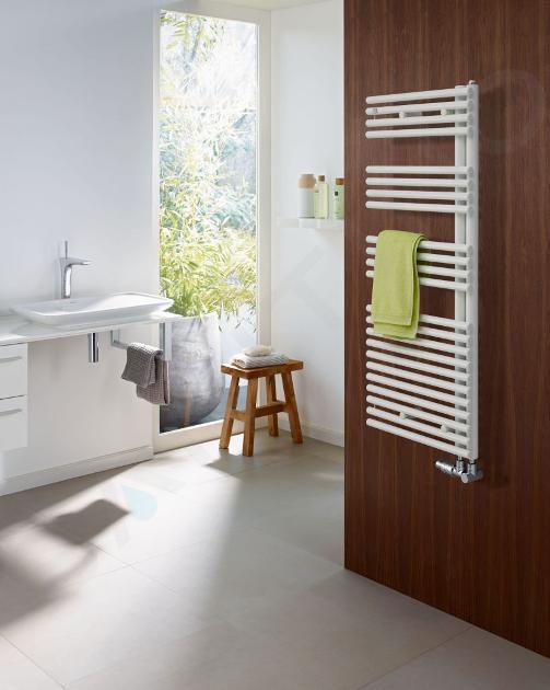 la disposizione asimmetrica del tubo consente l'inserimento ideale dell'asciugamano dal fianco